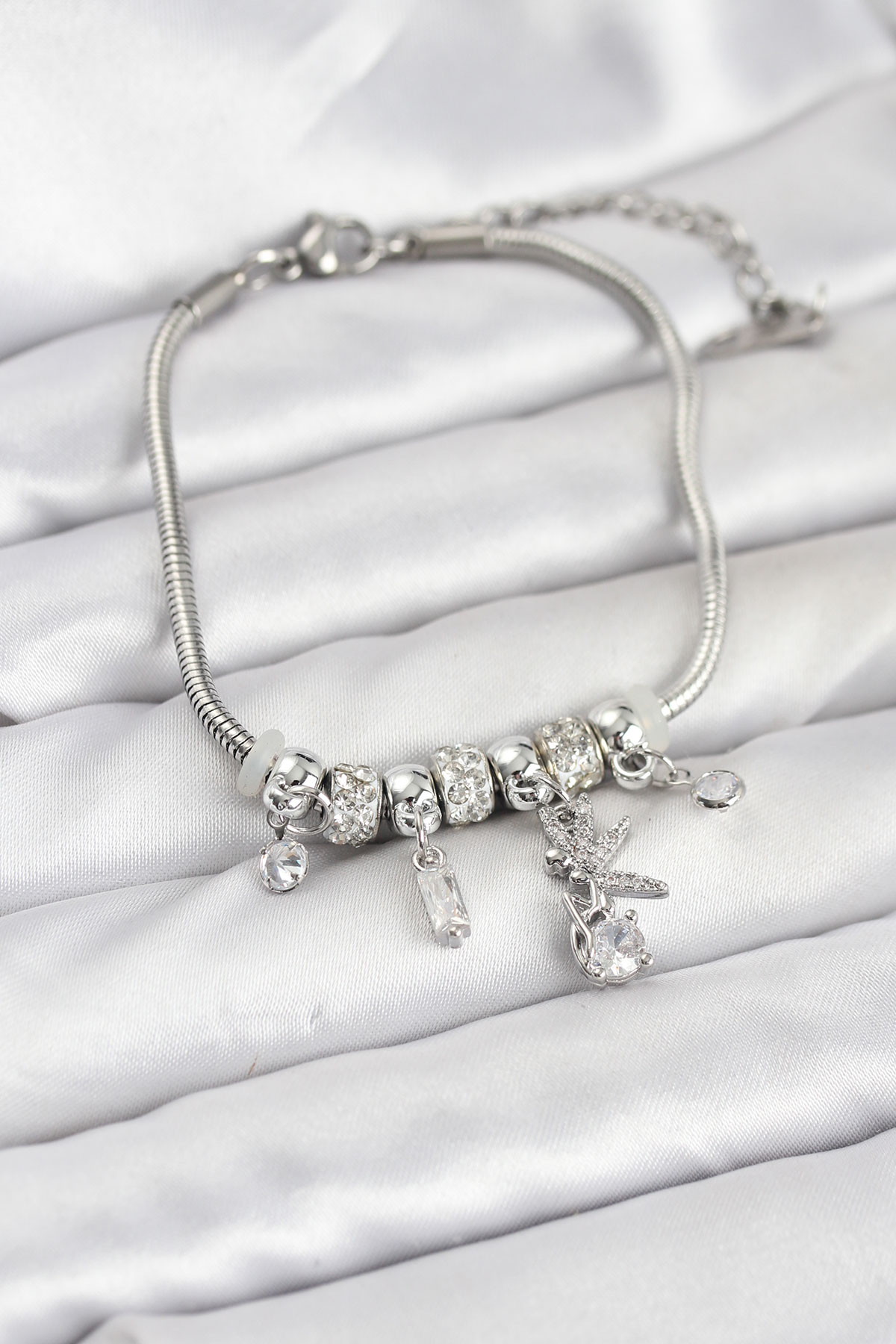 Pirinç Gümüş Renk Tinkerbell Charmlı Kadın Bileklik - 266884