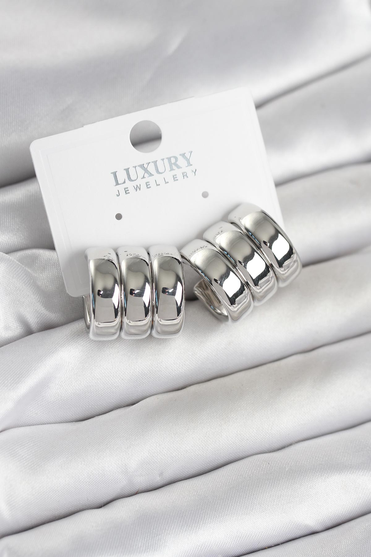 Pirinç Gümüş Renk Üçlü Görünüm Kadın Küpe - 268241