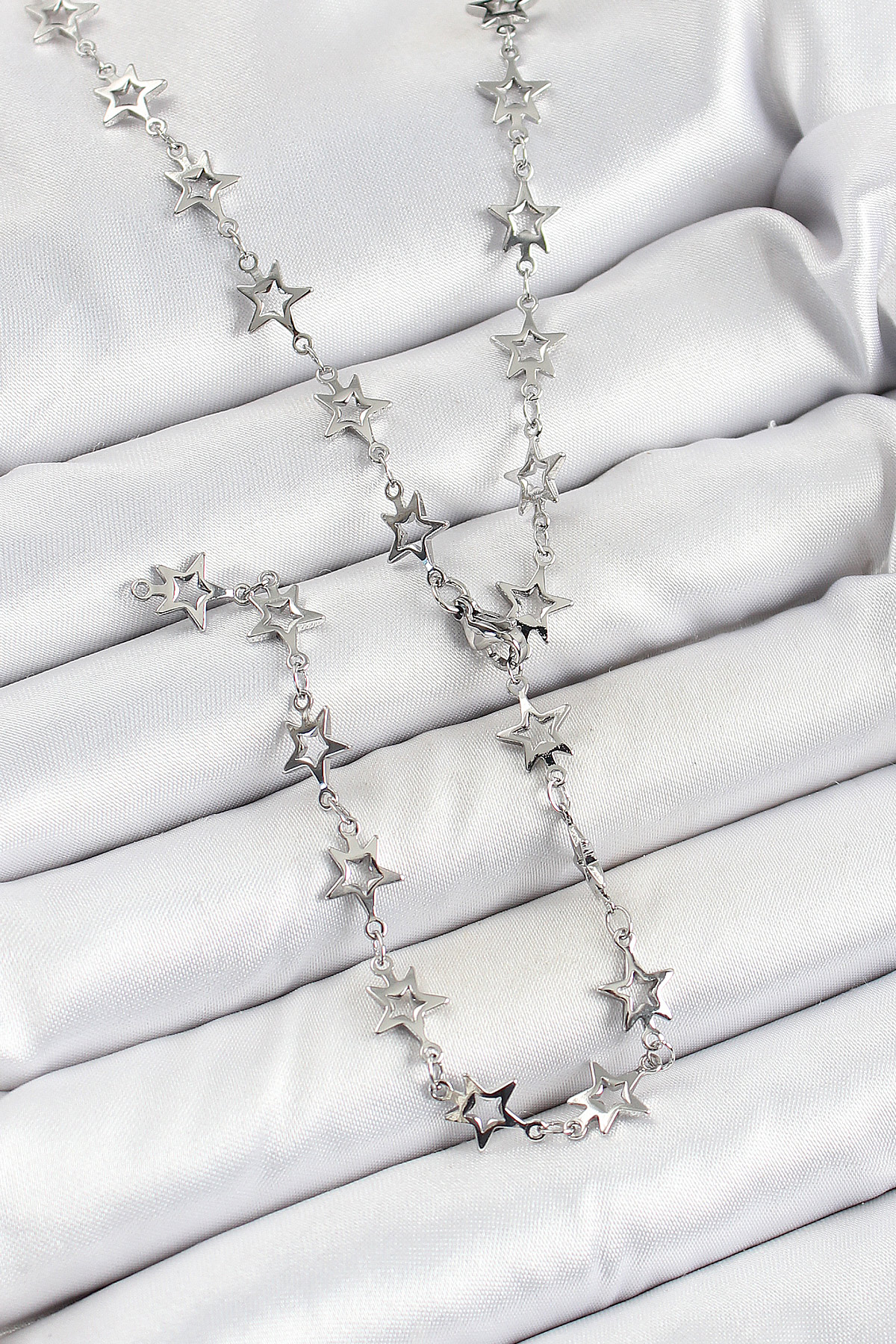 Pirinç Gümüş Renk Yıldızlı Kadın Y Kolye - 263210
