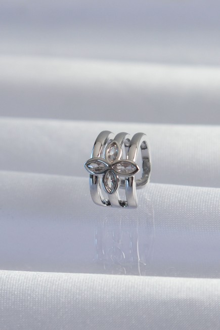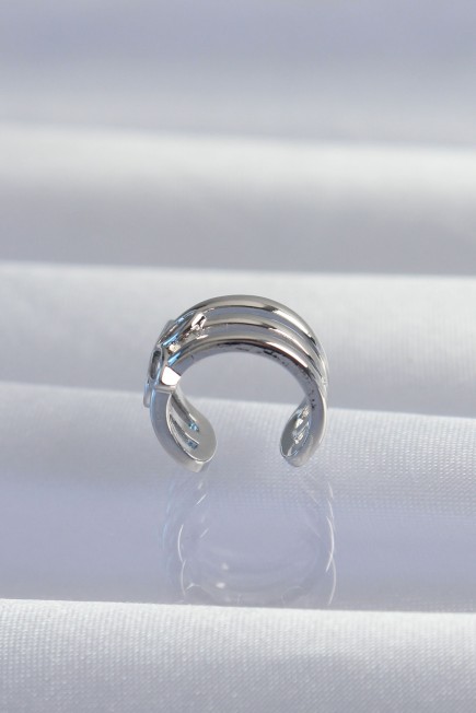 Pirinç Gümüş Renk Yonca Earcuff Küpe - 256635