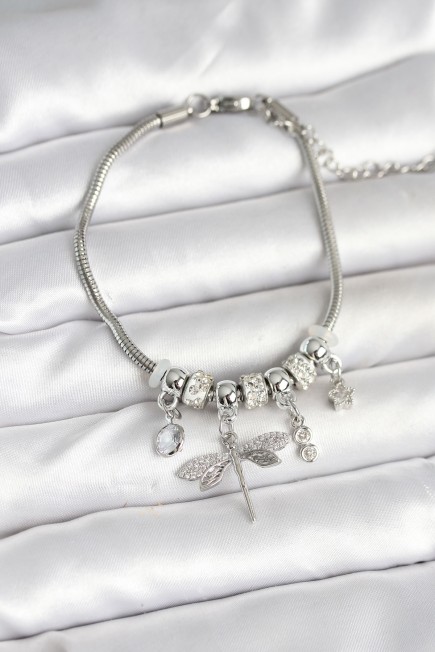 Pirinç Gümüş Renk Yusufçuk Charmlı Kadın Bileklik - 265910