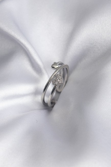 Pirinç Gümüş Renk Zirkon Taş Detay Kalp Model Kadın Yüzük - 252433