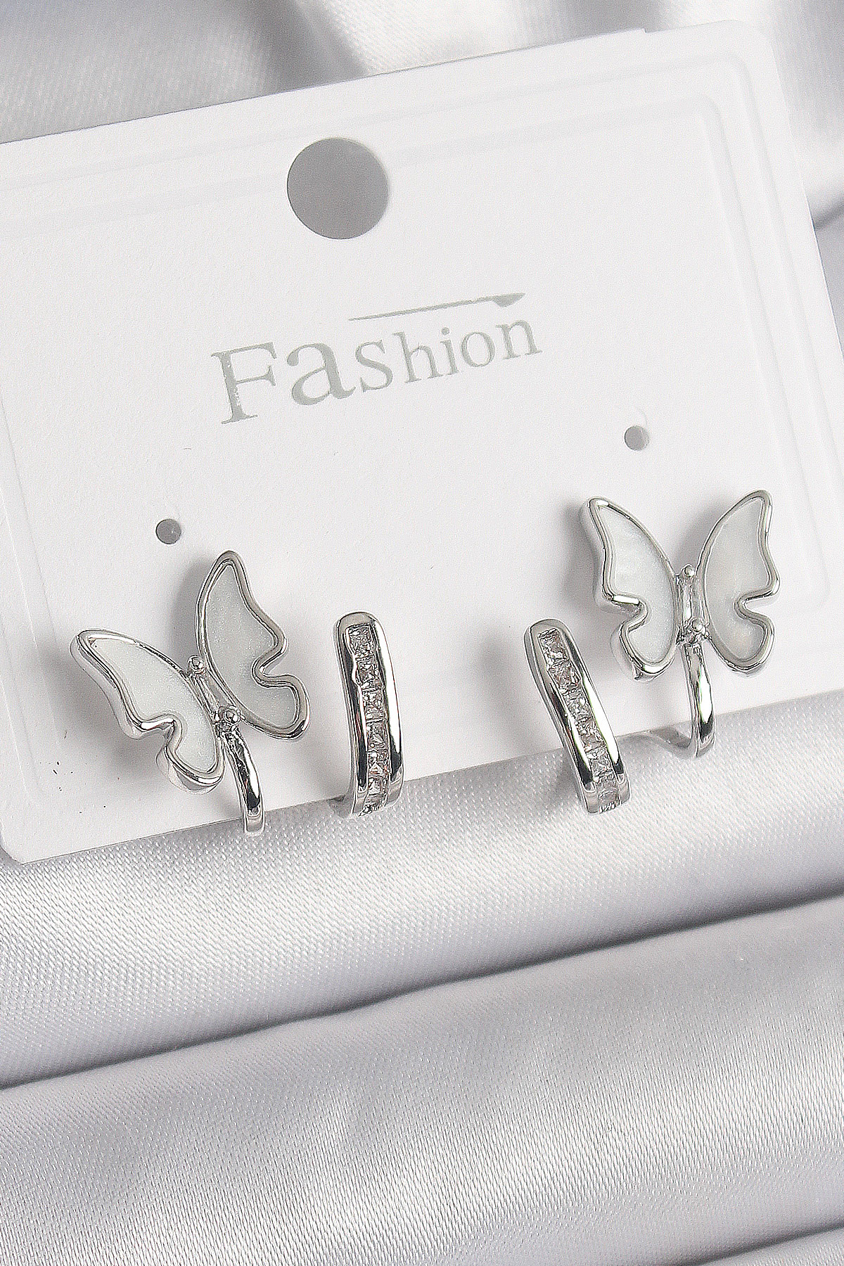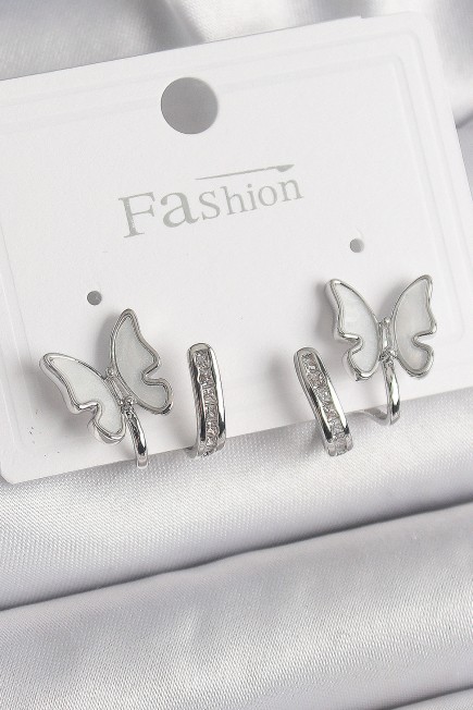 Pirinç Gümüş Renk Zirkon Taş Detaylı Beyaz Sedefli Kelebek Model Kadın Küpe - 259560