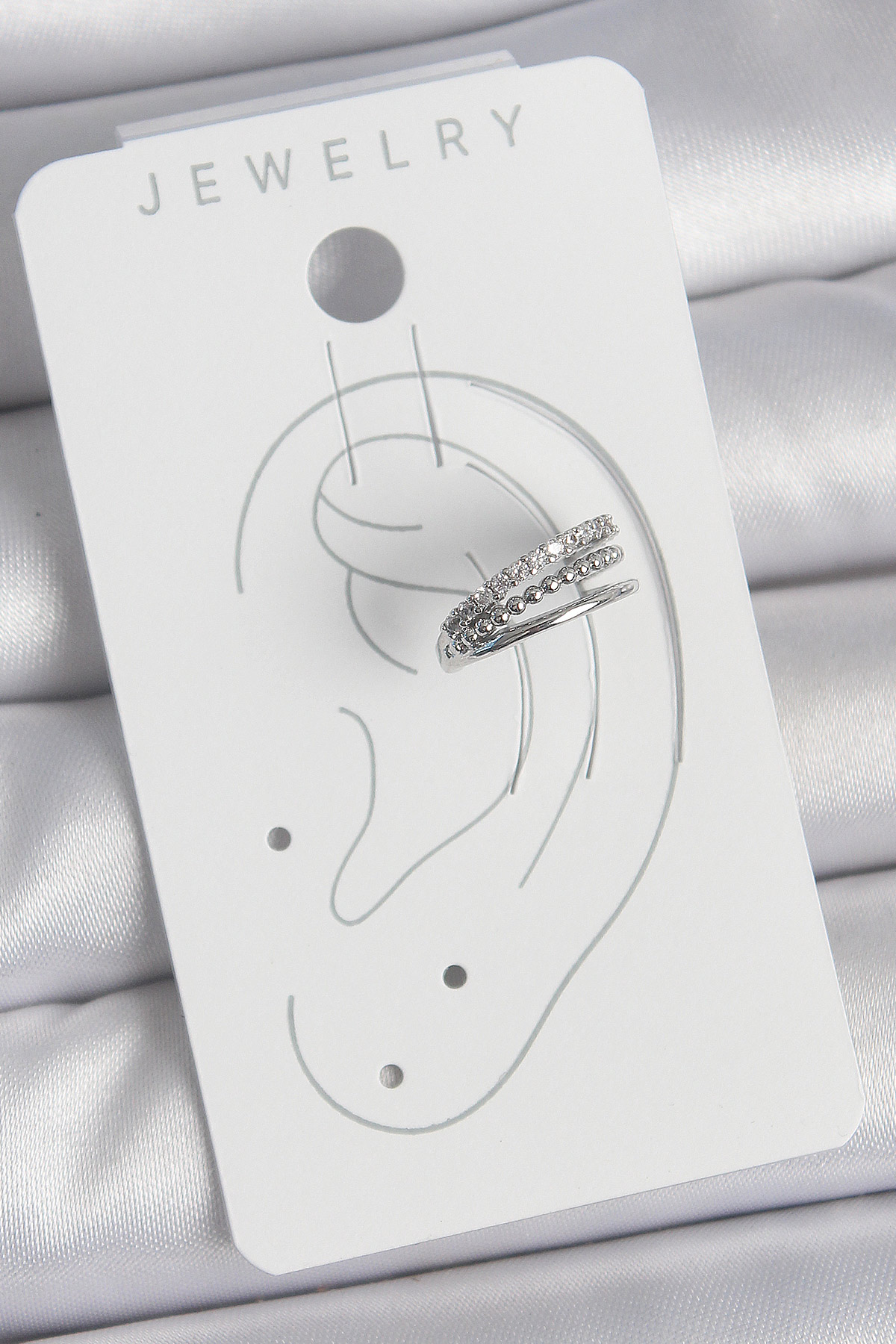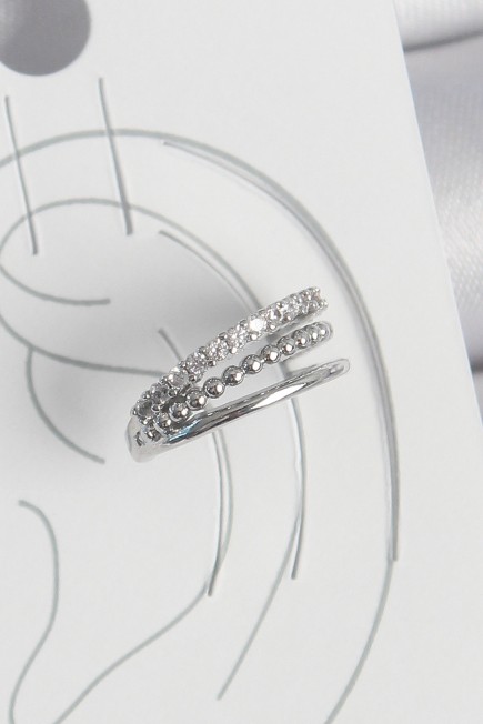 Pirinç Gümüş Renk Zirkon Taşlı 3'Lü Sıralı Model Kadın Kıkırdak Küpe - 262574