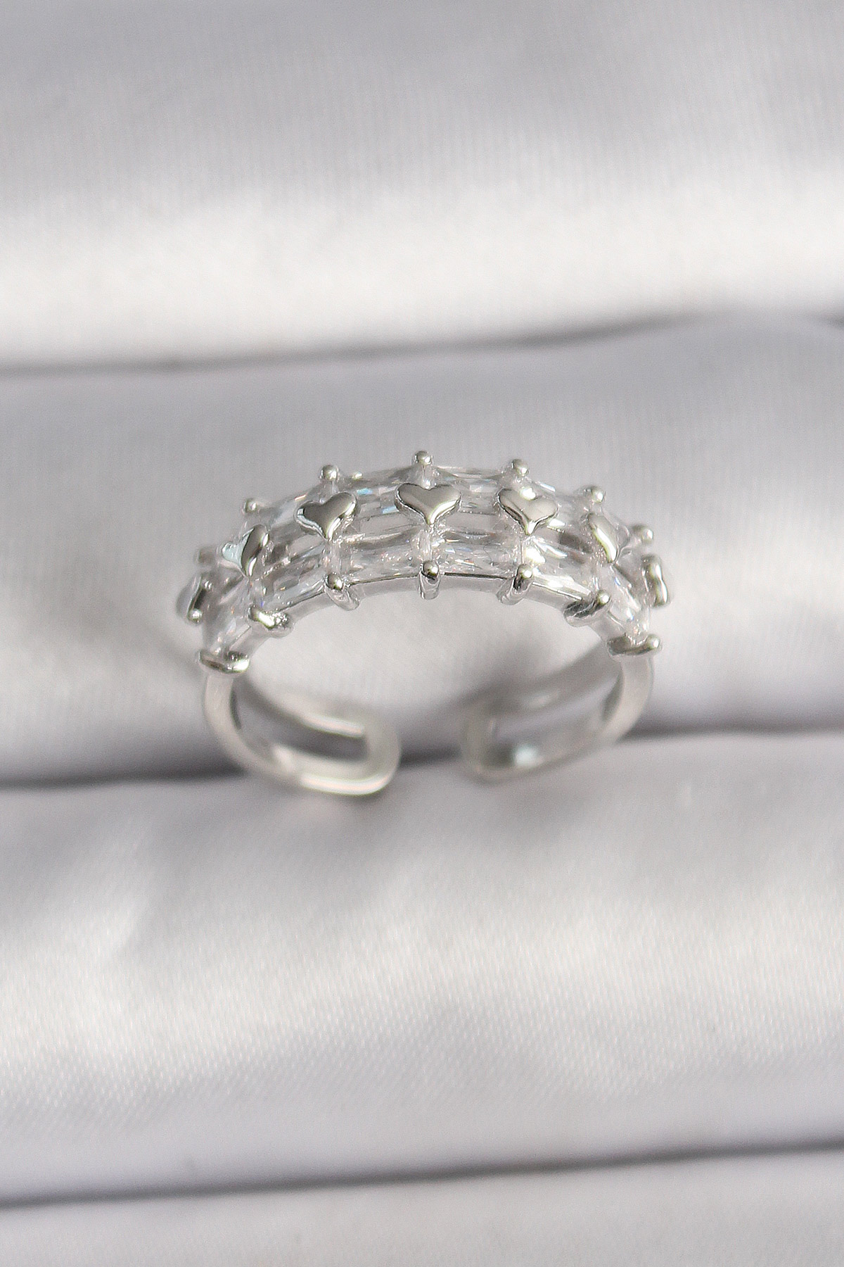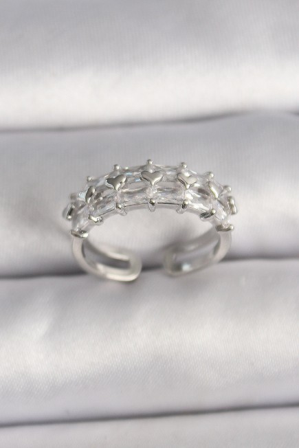 Pirinç Gümüş Renk Zirkon Taşlı Ayarlanabilir Yüzük - 259961