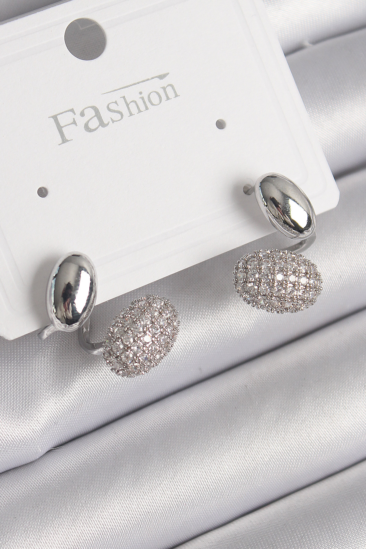 Pirinç Gümüş Renk Zirkon Taşlı Bombeli Model Kadın Küpe - 259299