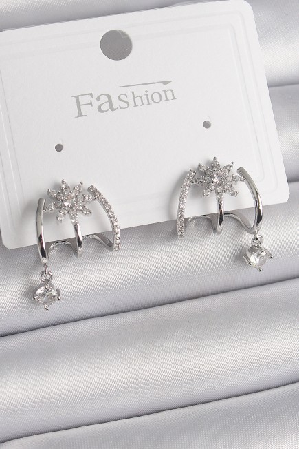 Pirinç Gümüş Renk Zirkon Taşlı Çiçek Figür Sallantı Detay Kadın Küpe - 259534