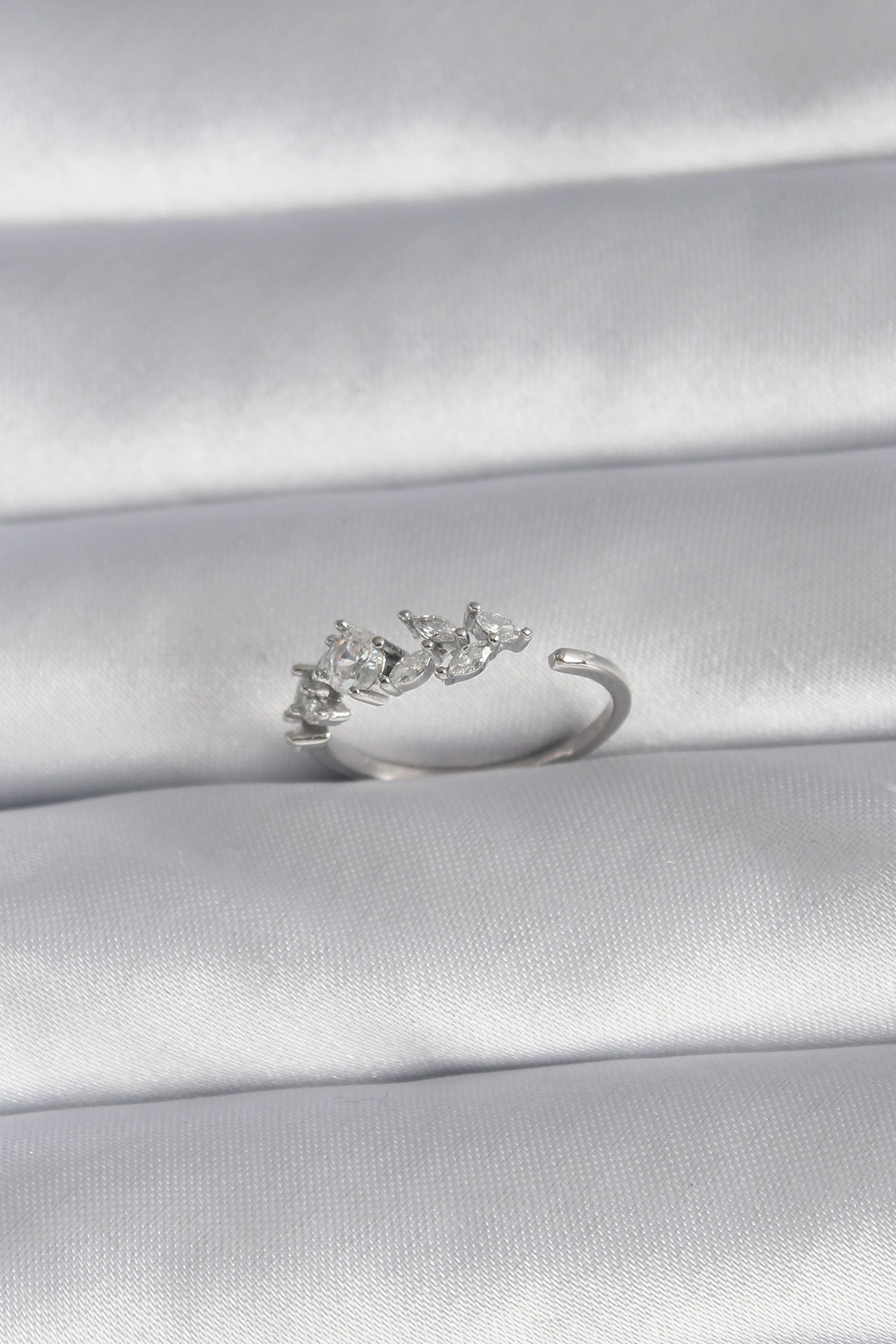 Pirinç Gümüş Renk Zirkon Taşlı Çiçek Model Kadın Yüzük - 253239