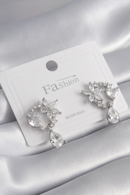Pirinç Gümüş Renk Zirkon Taşlı Çiçek Model Sallantı Detay Kadın Küpe - 253217