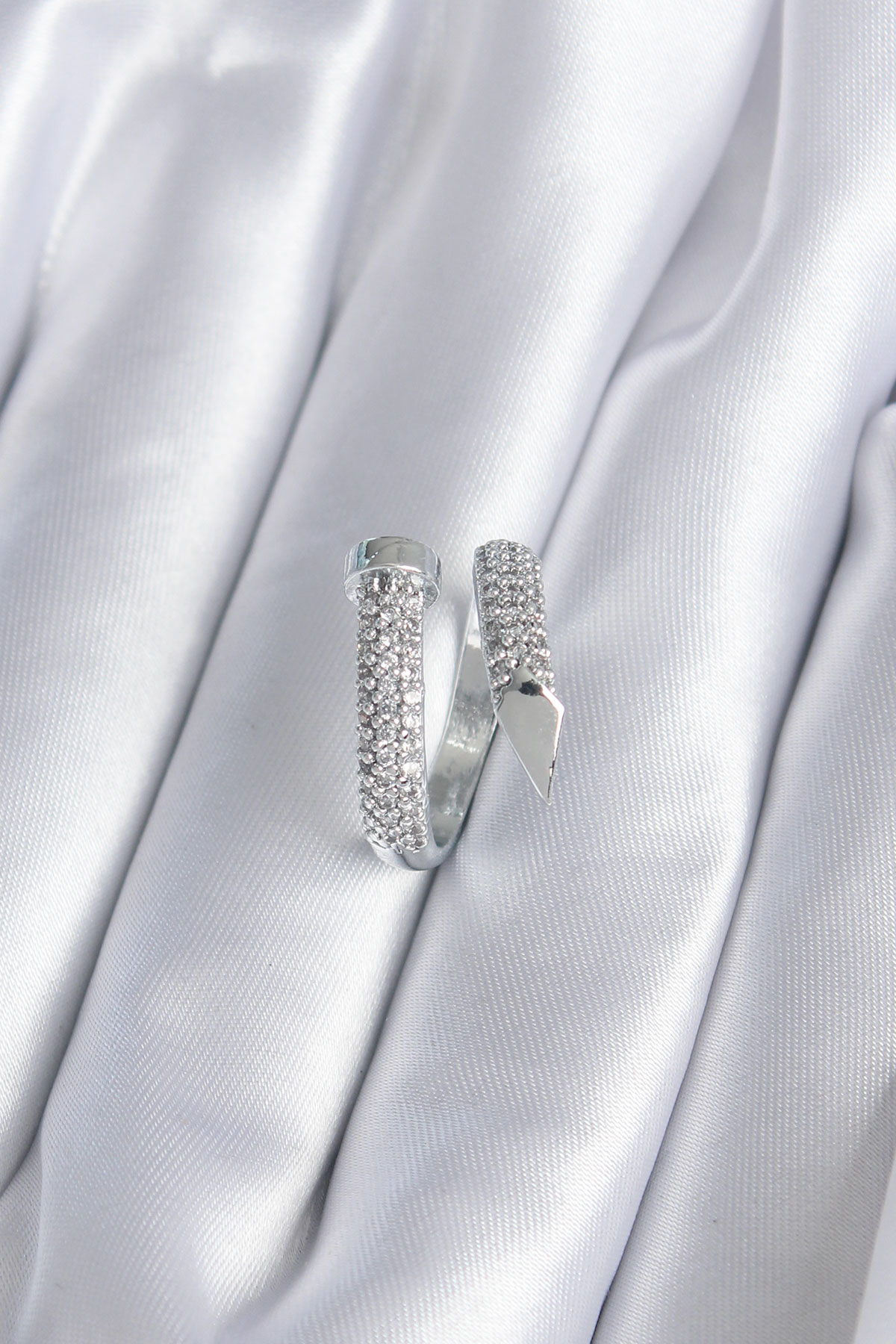 Pirinç Gümüş Renk Zirkon Taşlı Çivi Model Kadın Yüzük - 251815