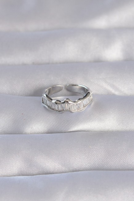 Pirinç Gümüş Renk Zirkon Taşlı Dalgalı Su Yolu Model Ayarlanabilir Yüzük - 255920