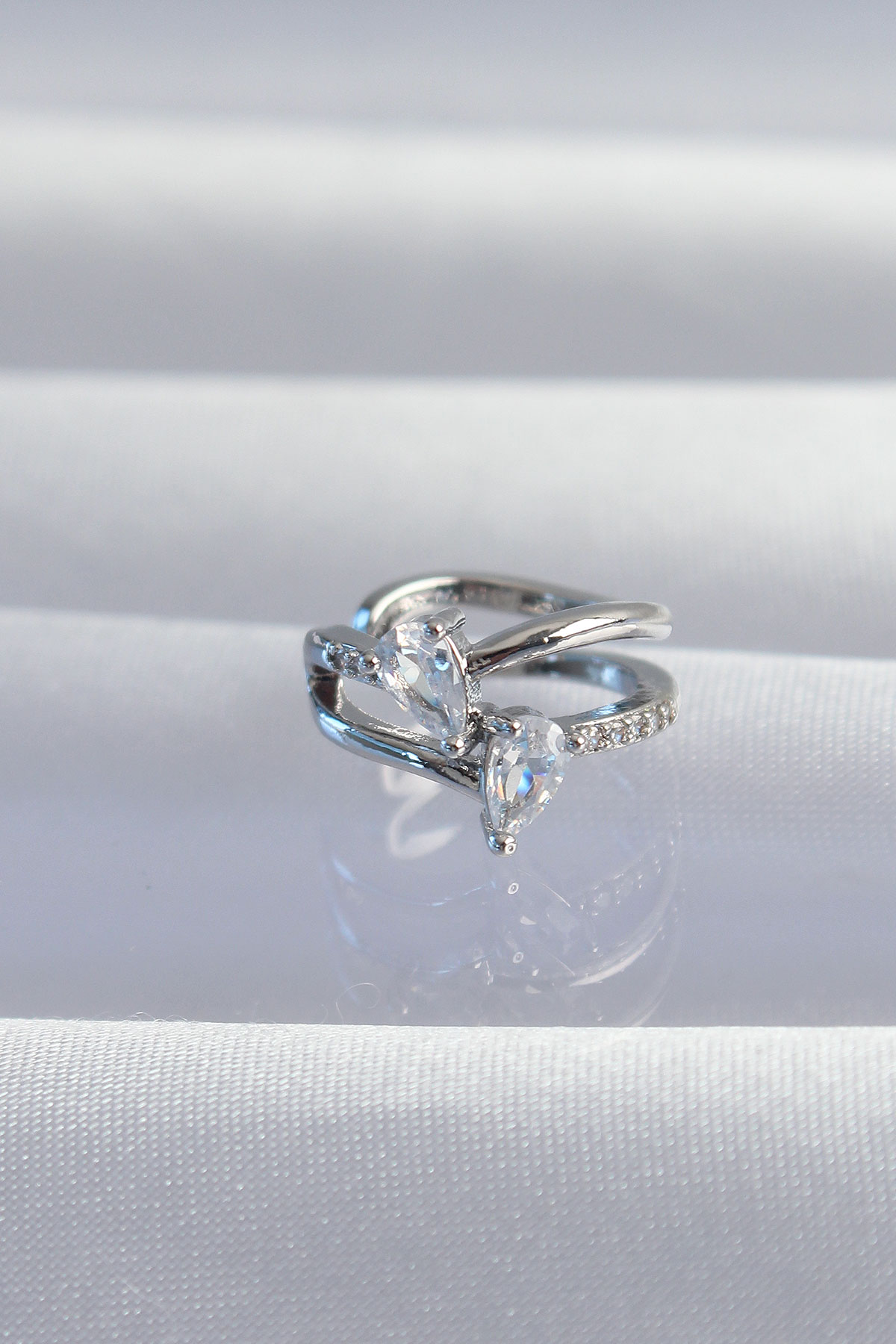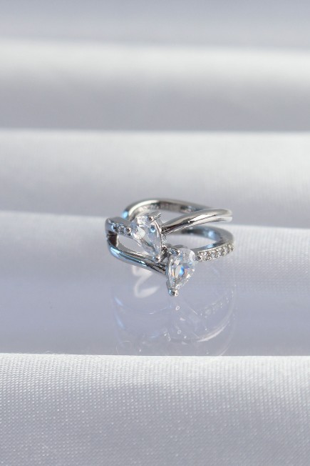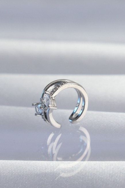 Pirinç Gümüş Renk Zirkon Taşlı Damla Earcuff Küpe - 256639