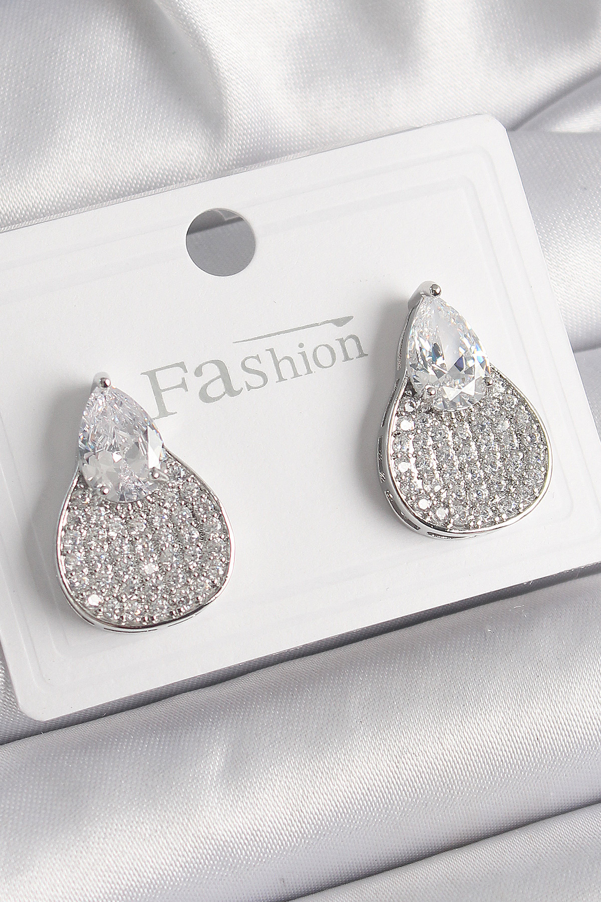 Pirinç Gümüş Renk Zirkon Taşlı Damla Model Kadın Küpe - 259562