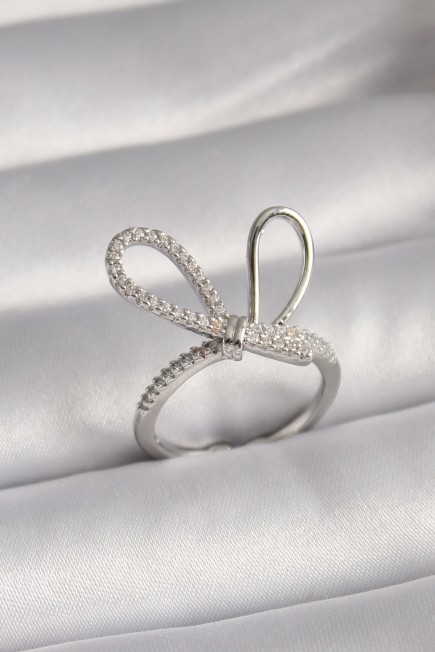 Pirinç Gümüş Renk Zirkon Taşlı Düğüm Model Kadın Yüzük - 254122