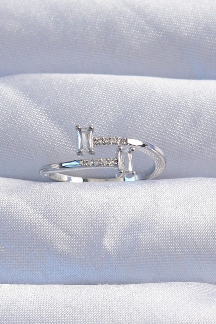 Pirinç Gümüş Renk Zirkon Taşlı Geometrik Ayarlanabilir Yüzük - 256361