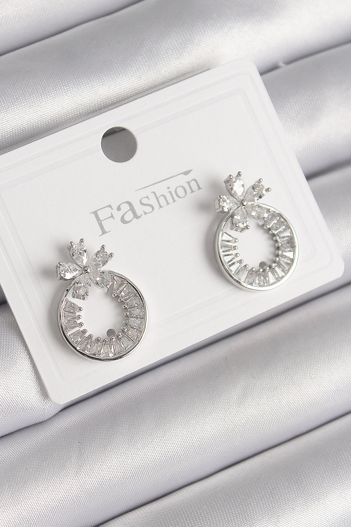 Pirinç Gümüş Renk Zirkon Taşlı Halka Model Çiçek Figür Kadın Küpe - 259307