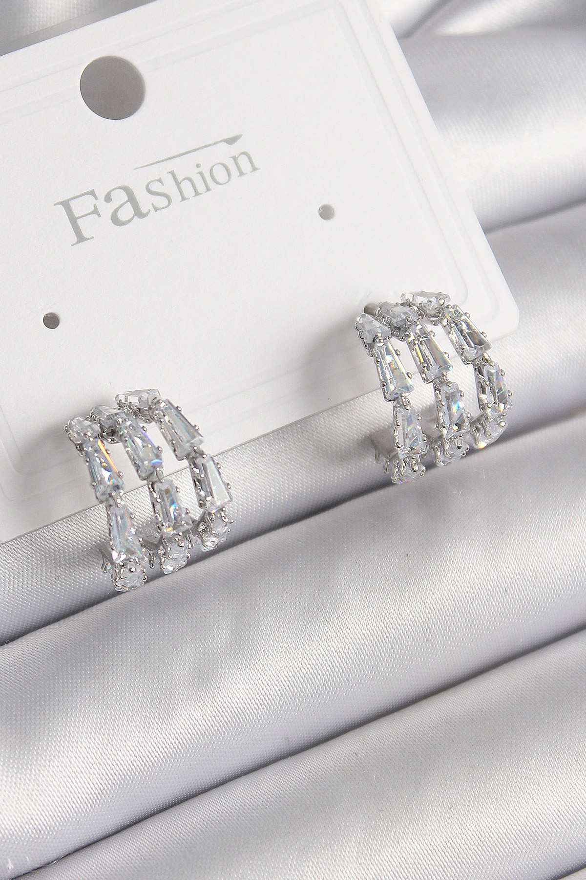 Pirinç Gümüş Renk Zirkon Taşlı Halka Model Kadın Küpe - 259875