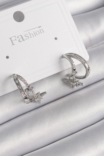 Pirinç Gümüş Renk Zirkon Taşlı Halka Model Sallantı Yıldız Detay Kadın Küpe - 259909