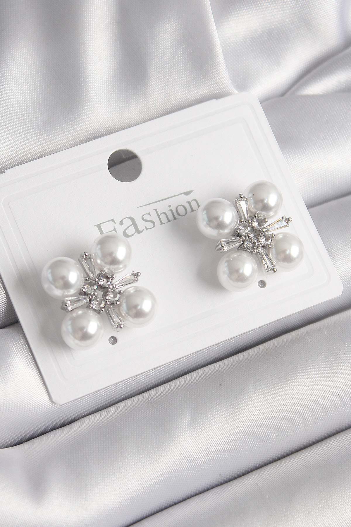 Pirinç Gümüş Renk Zirkon Taşlı İncili Kadın Küpe - 259867