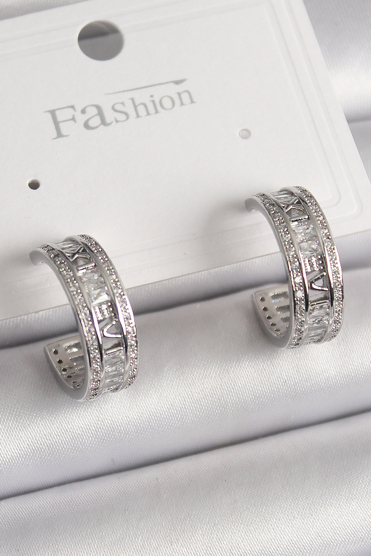 Pirinç Gümüş Renk Zirkon Taşlı İşleme Detay Halka Model Kadın Küpe - 259606