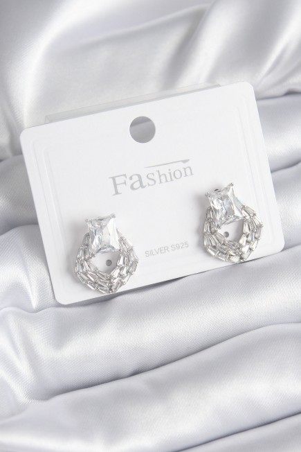 Pirinç Gümüş Renk Zirkon Taşlı Kadın Küpe - 252983