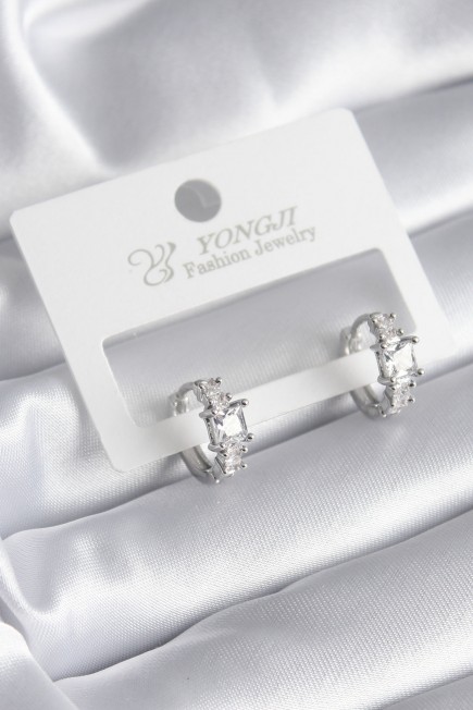 Pirinç Gümüş Renk Zirkon Taşlı Kadın Küpe - 252999