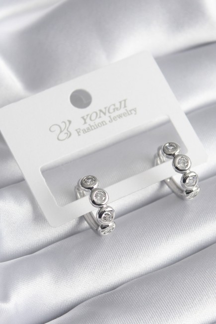 Pirinç Gümüş Renk Zirkon Taşlı Kadın Küpe - 253003