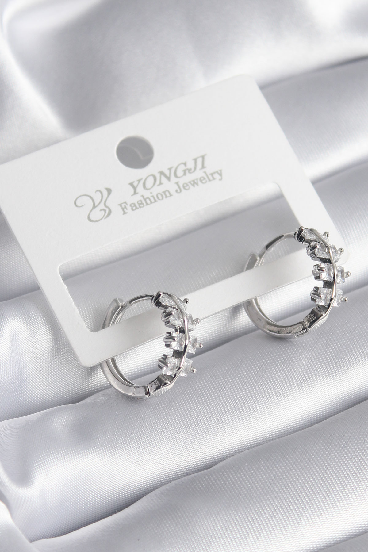 Pirinç Gümüş Renk Zirkon Taşlı Kadın Küpe - 253013