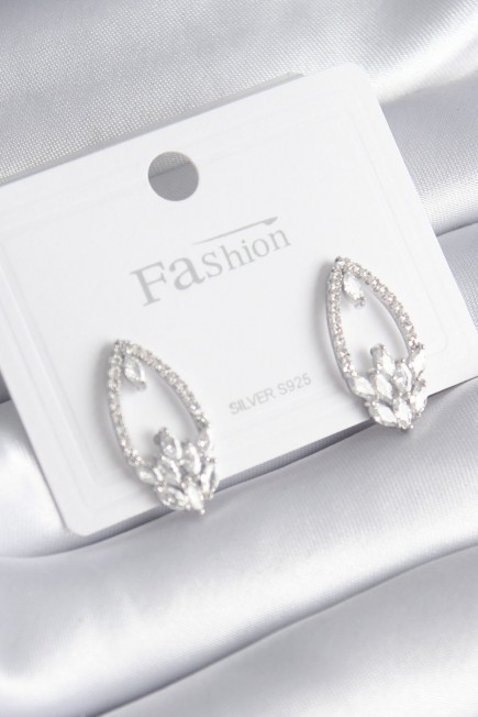 Pirinç Gümüş Renk Zirkon Taşlı Kadın Küpe - 253207
