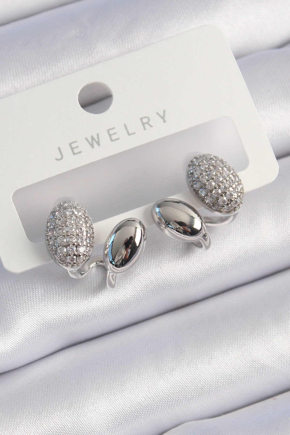 Pirinç Gümüş Renk Zirkon Taşlı Kadın Küpe - 257757
