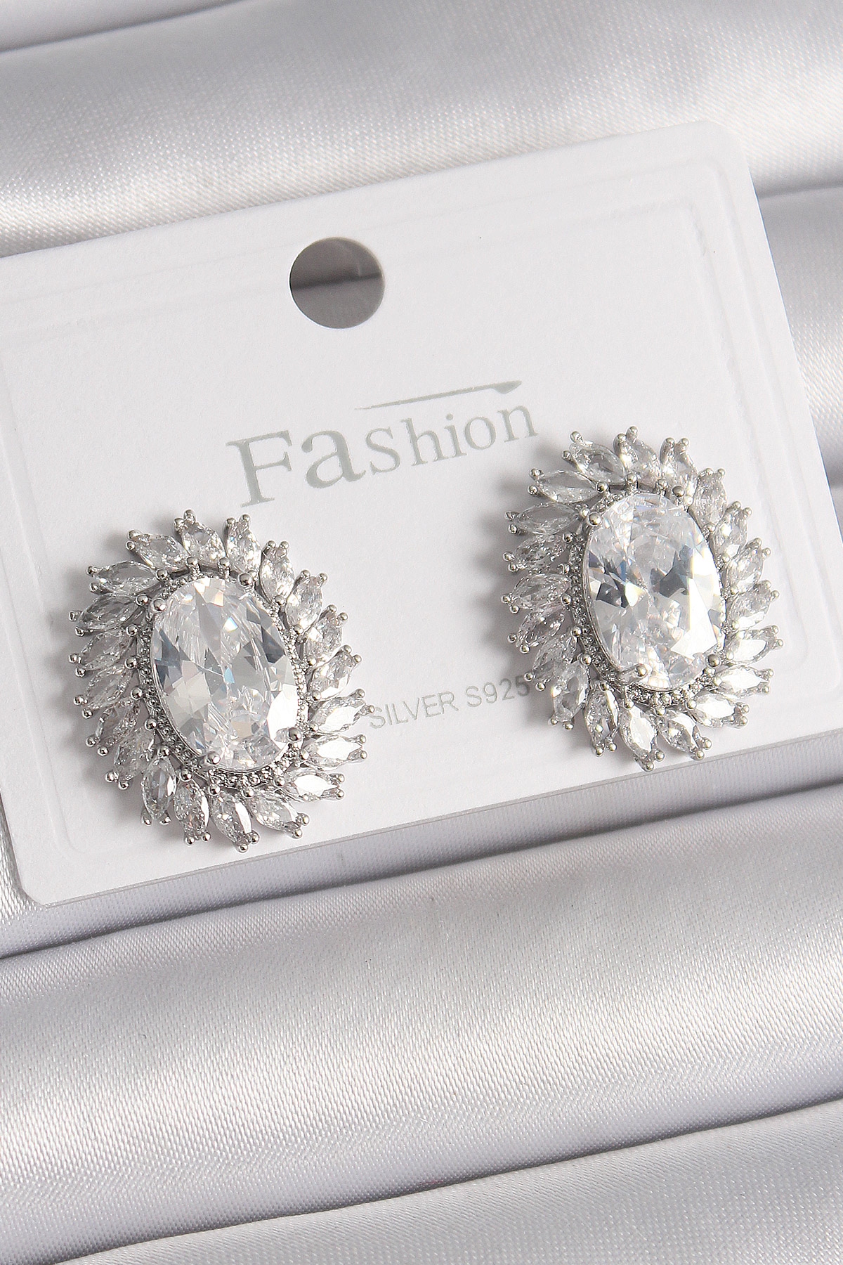 Pirinç Gümüş Renk Zirkon Taşlı Kadın Küpe - 259618