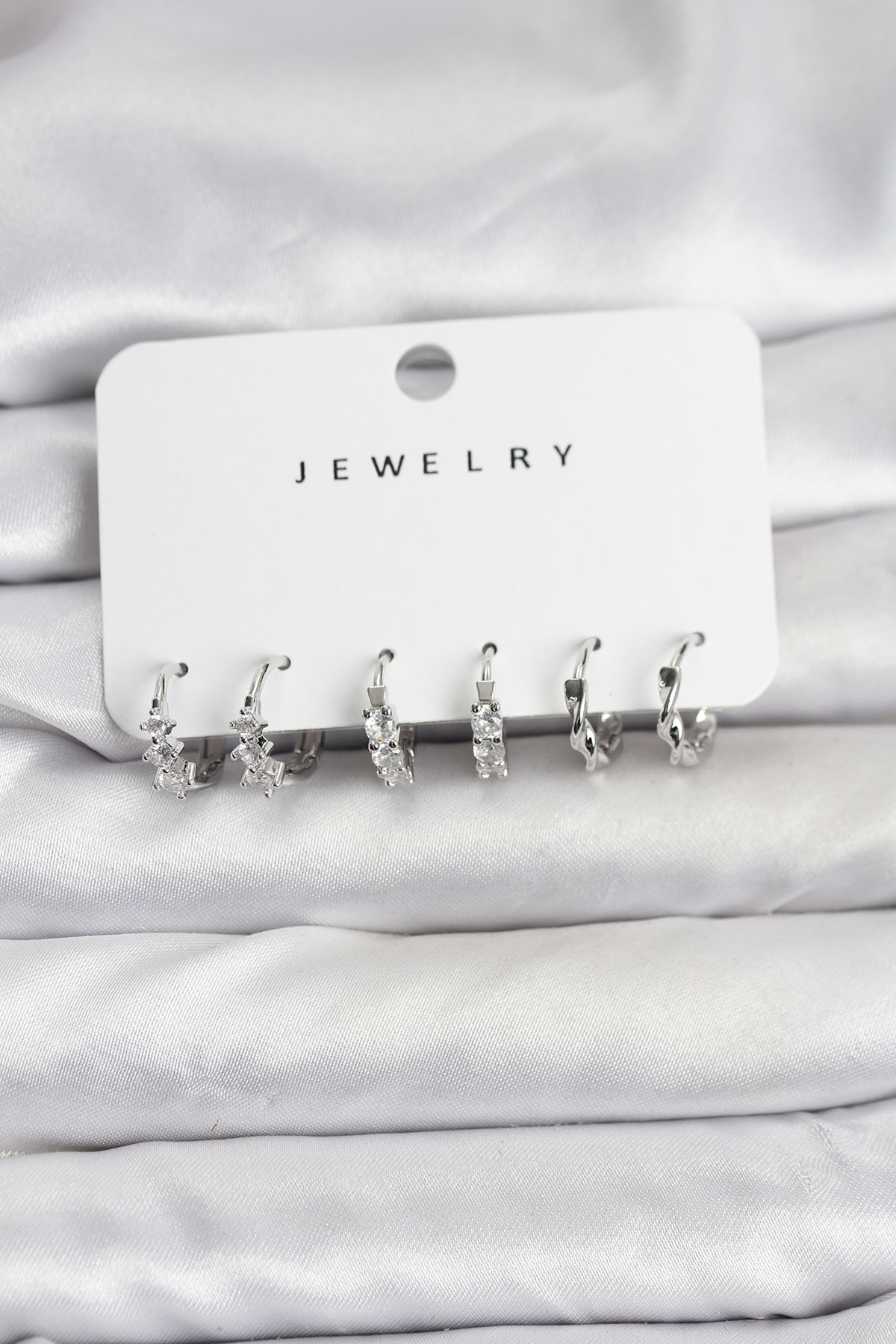 Pirinç Gümüş Renk Zirkon Taşlı Kadın Küpe Seti - 266740