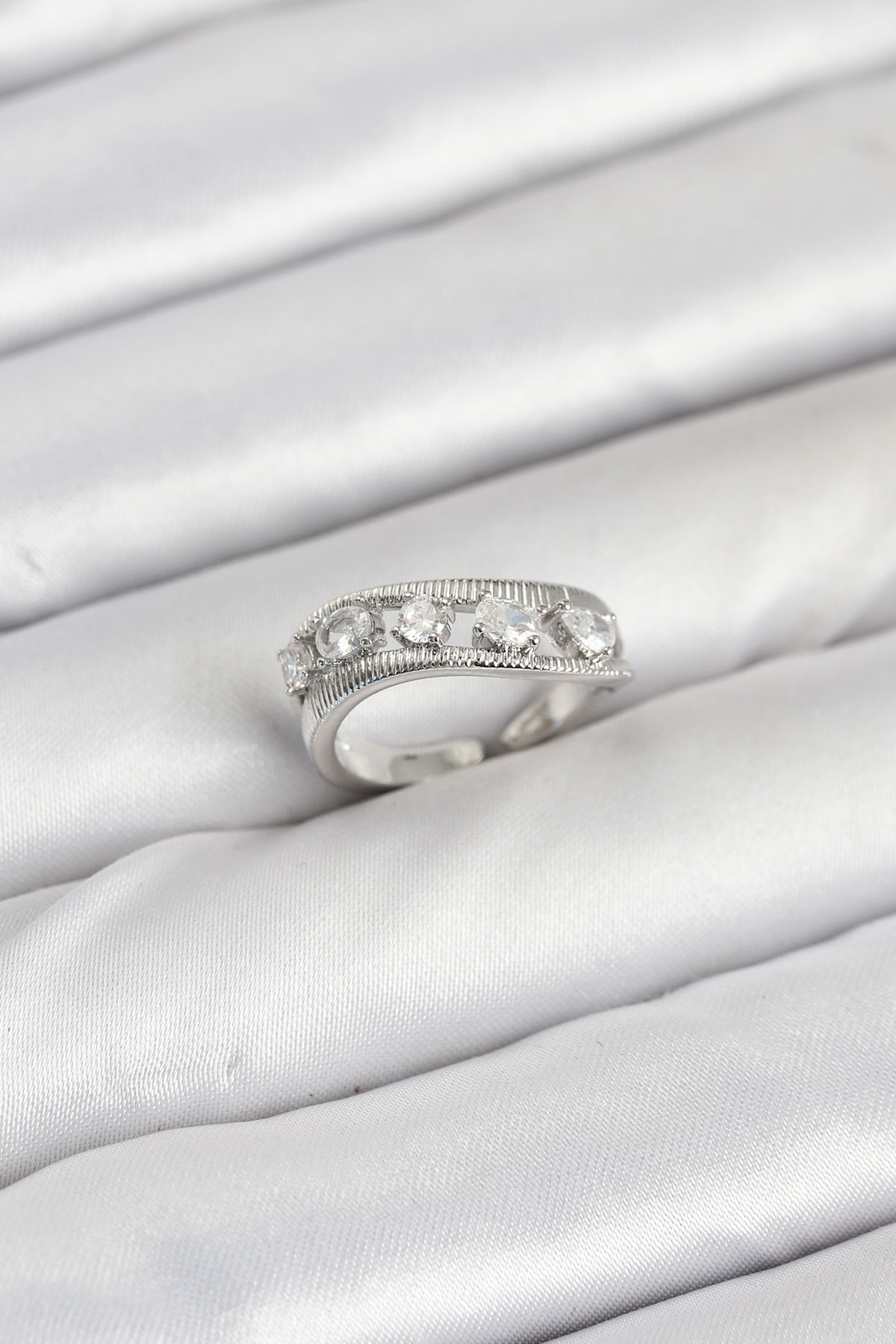 Pirinç Gümüş Renk Zirkon Taşlı Kadın Yüzük - 265808