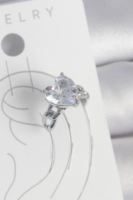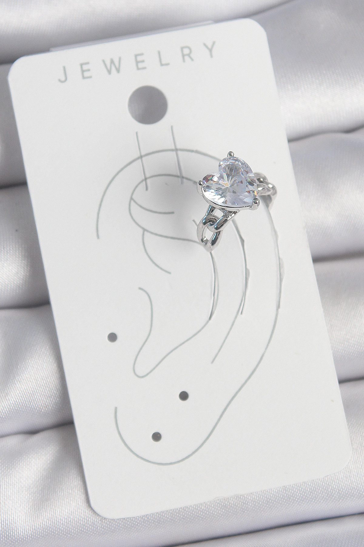 Pirinç Gümüş Renk Zirkon Taşlı Kalp Model Kadın Kıkırdak Küpe - 262582