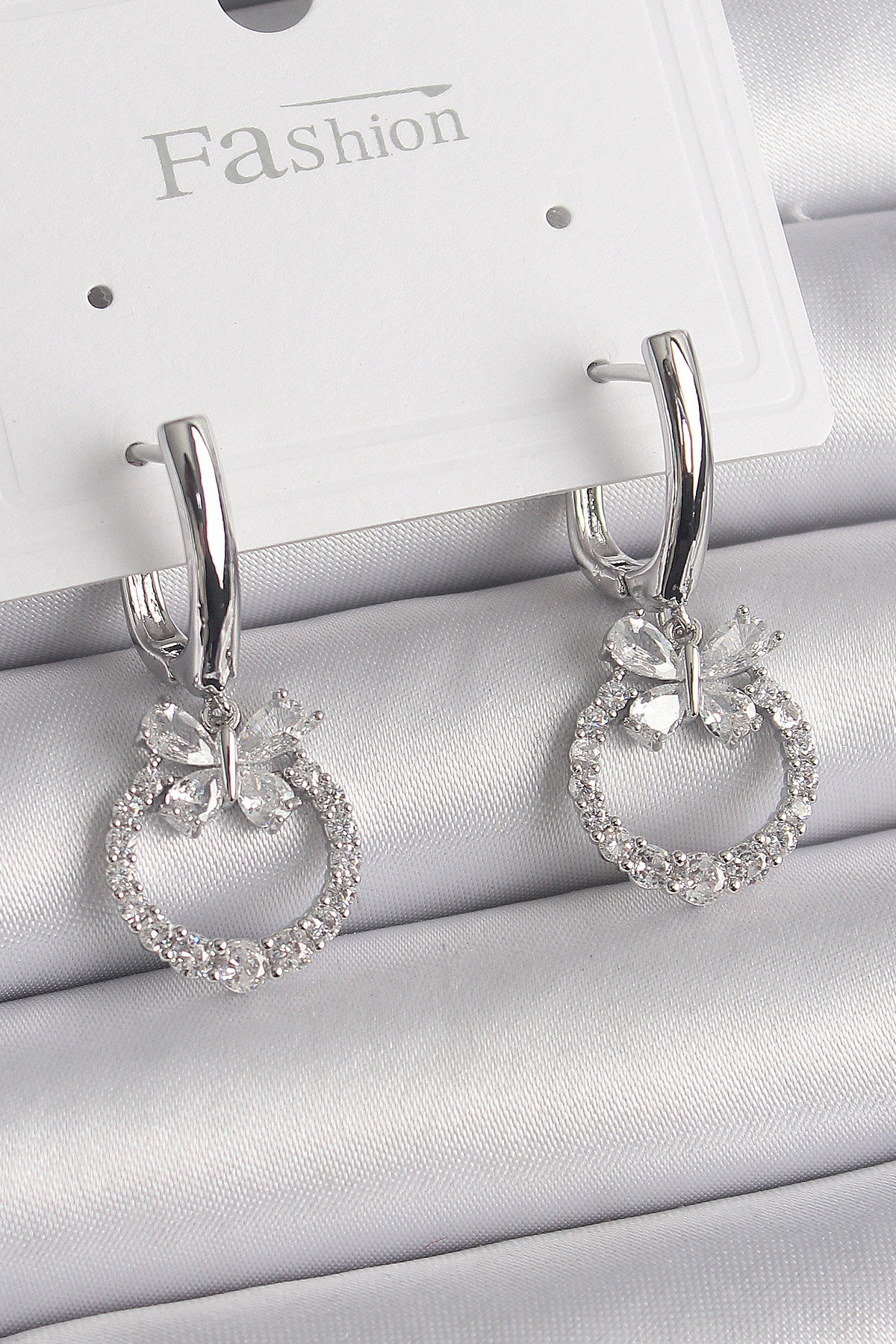 Pirinç Gümüş Renk Zirkon Taşlı Kelebek Figür Sallantı Detay Kadın Küpe - 259532