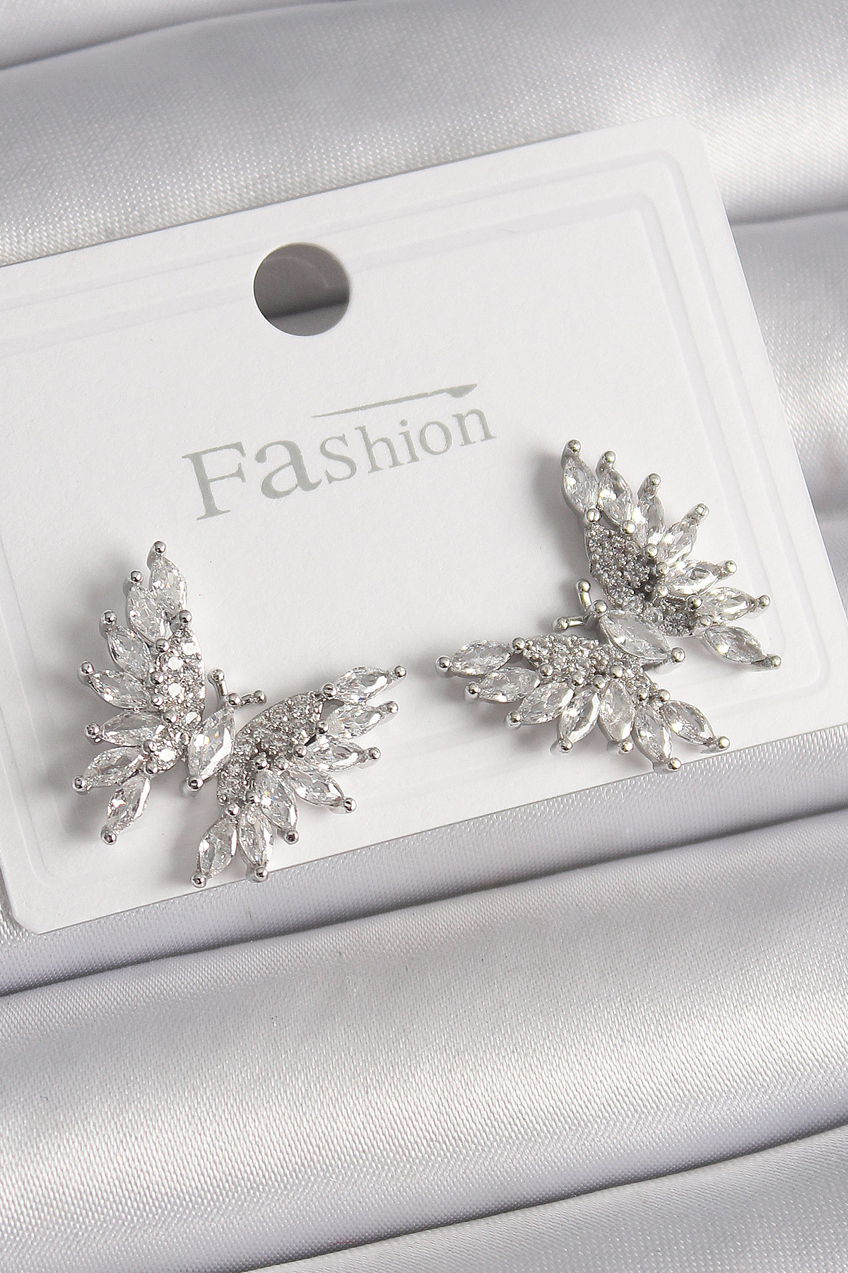 Pirinç Gümüş Renk Zirkon Taşlı Kelebek Model Kadın Küpe - 259600