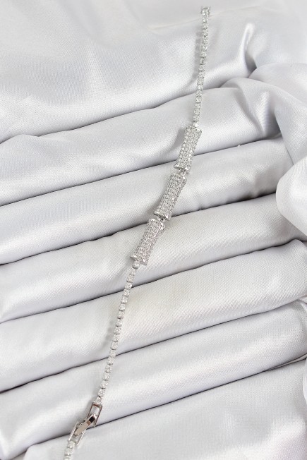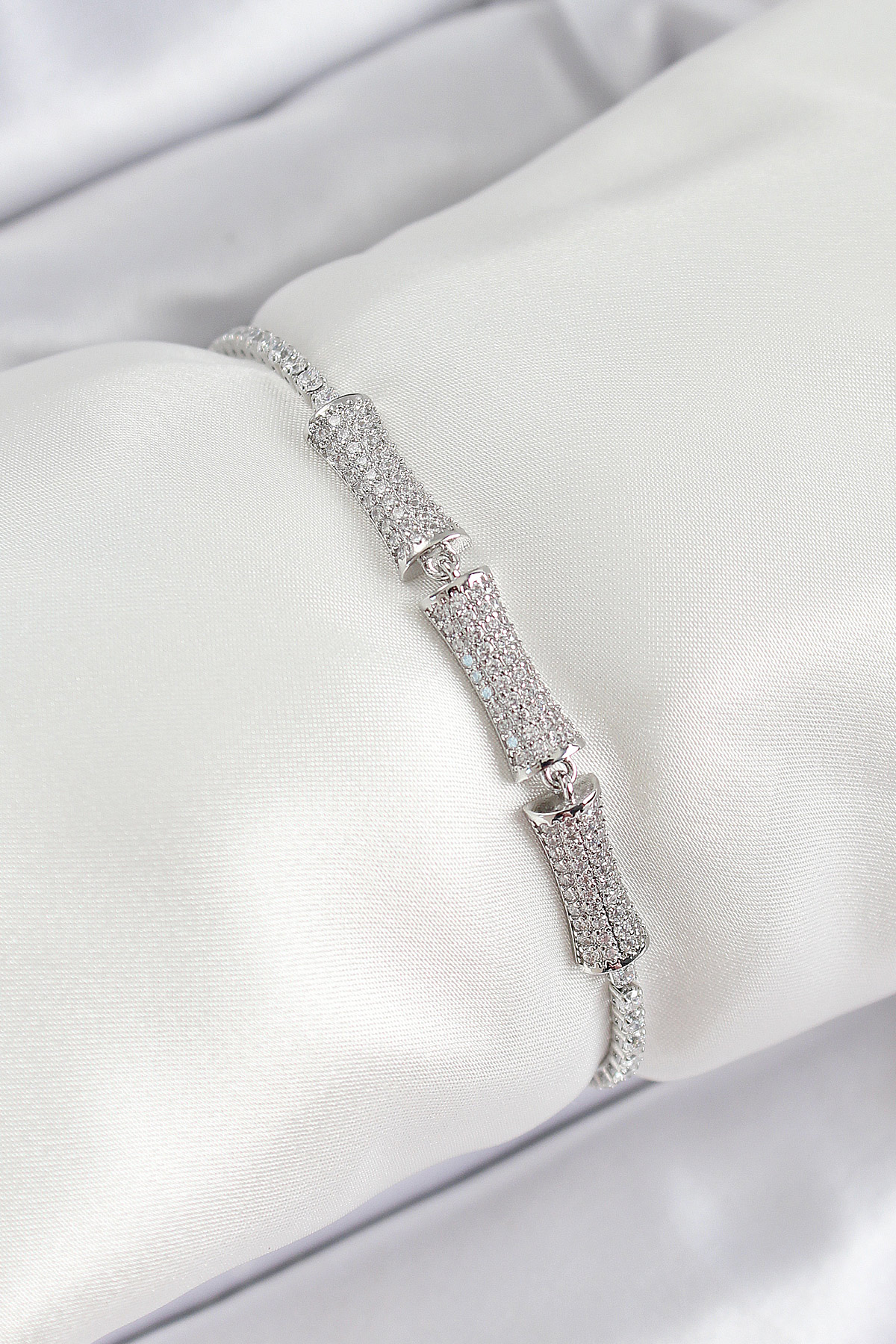 Pirinç Gümüş Renk Zirkon Taşlı Kemik Model Kadın Bileklik - 263228