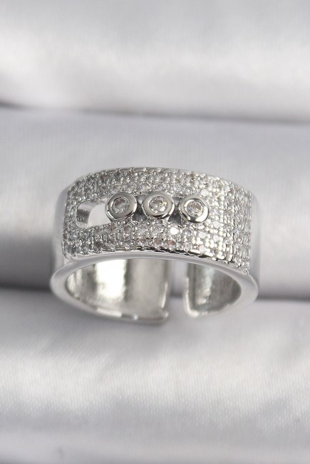 Pirinç Gümüş Renk Zirkon Taşlı Messika Model Kadın Yüzük - 259396