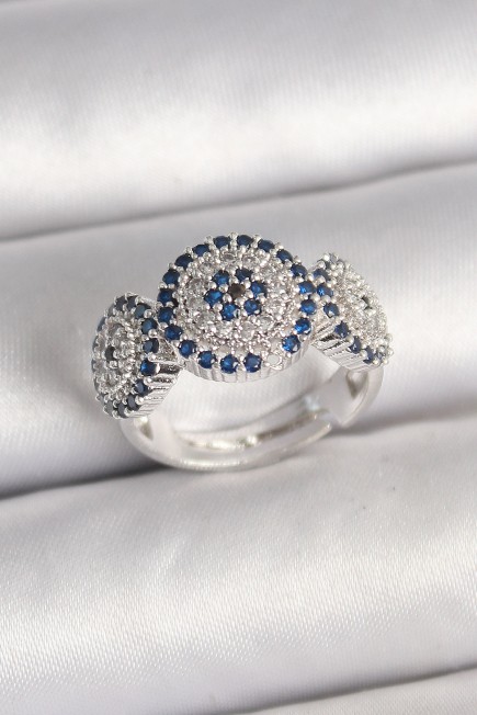 Pirinç Gümüş Renk Zirkon Taşlı Nazar Boncuk Model Ayarlanabilir Kadın Yüzük - 261338