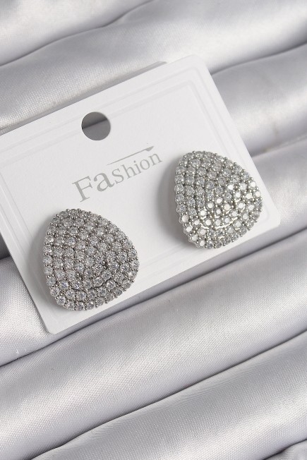 Pirinç Gümüş Renk Zirkon Taşlı Plaka Model Kadın Küpe - 259899