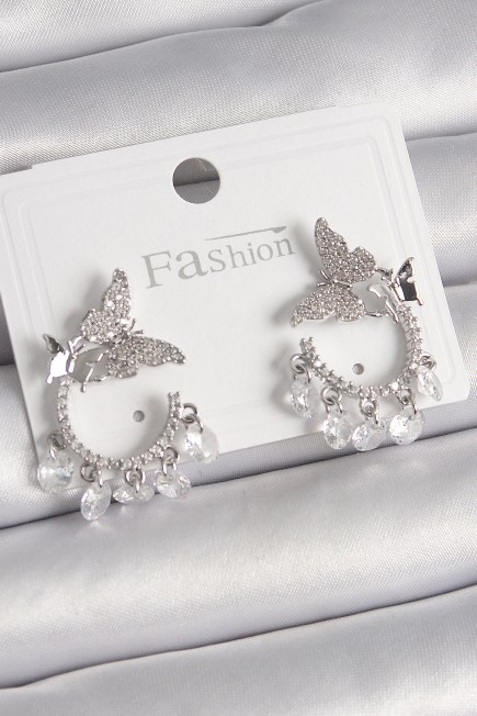 Pirinç Gümüş Renk Zirkon Taşlı Sallantı Detay Kelebek Model Kadın Küpe - 259594