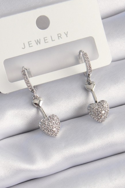 Pirinç Gümüş Renk Zirkon Taşlı Sallantı Kalp Model Kadın Küpe - 257755