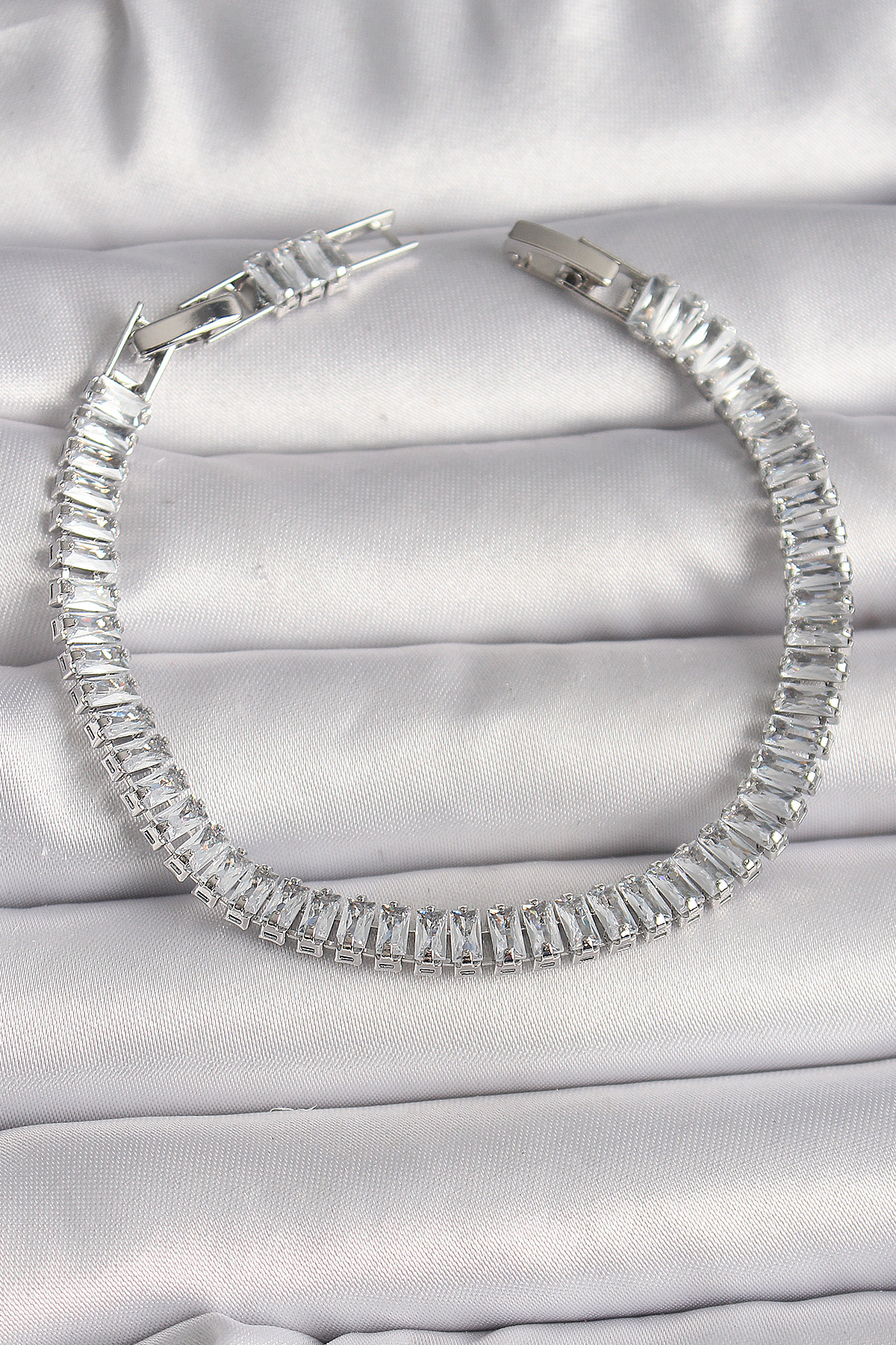 Pirinç Gümüş Renk Zirkon Taşlı Su Yolu Model Kadın Bileklik - 260550