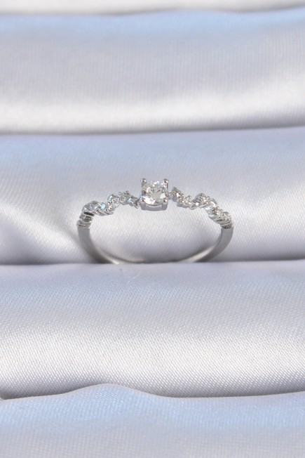 Pirinç Gümüş Renk Zirkon Taşlı Tek Taş Model Kadın Yüzük - 257827