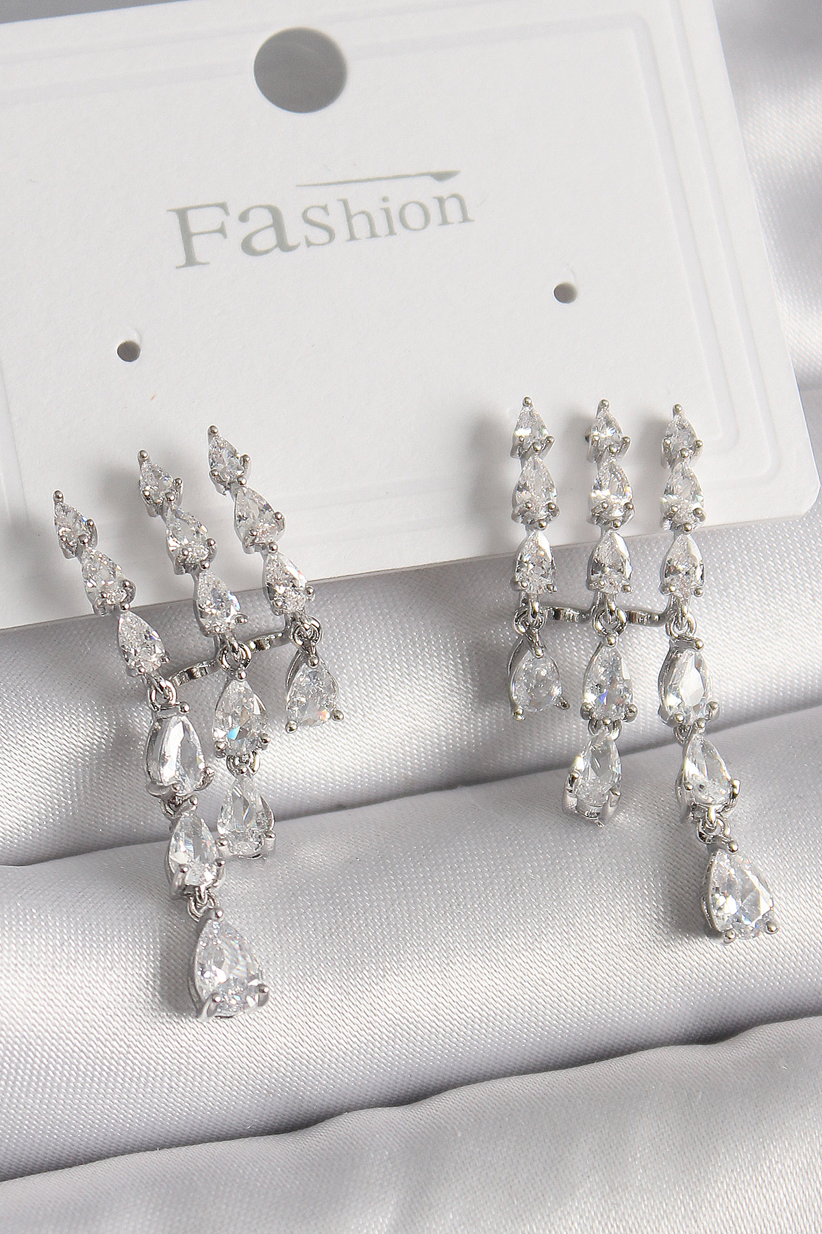 Pirinç Gümüş Renk Zirkon Taşlı Yağmur Model Kadın Küpe - 259628