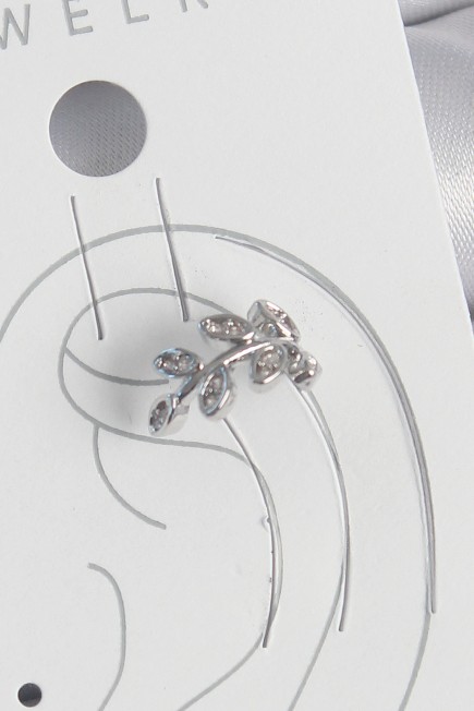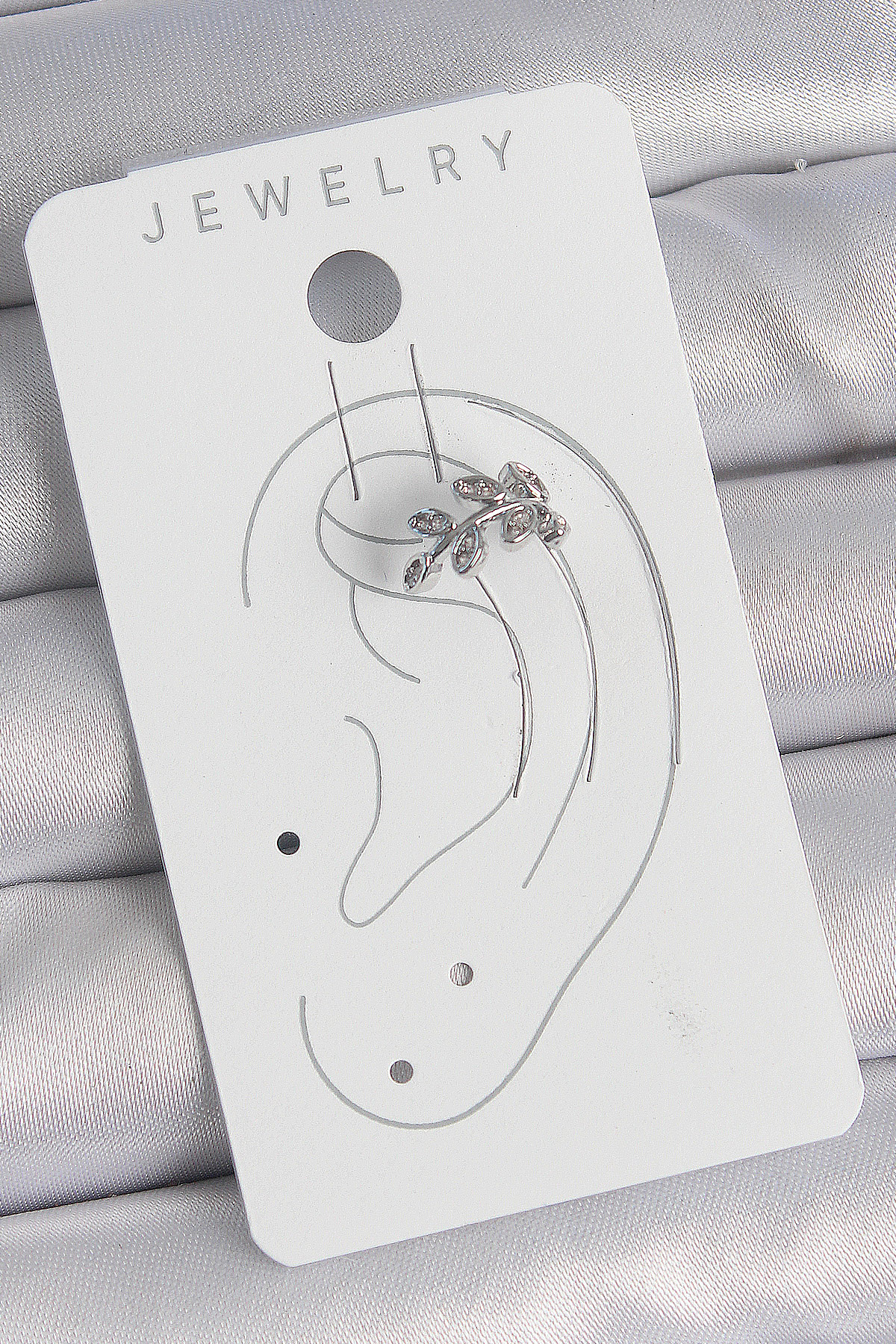 Pirinç Gümüş Renk Zirkon Taşlı Yaprak Model Kıkırdak Kadın Küpe - 262570