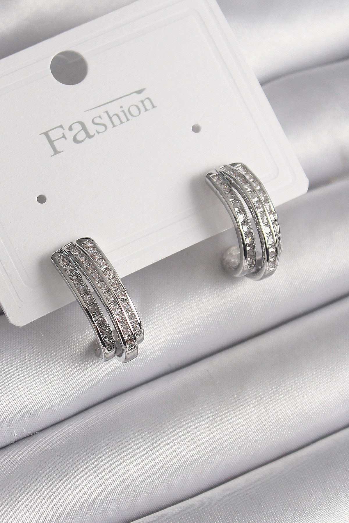 Pirinç Gümüş Renk Zirkon Taşlı Yarım Halka Model Kadın Küpe - 259897