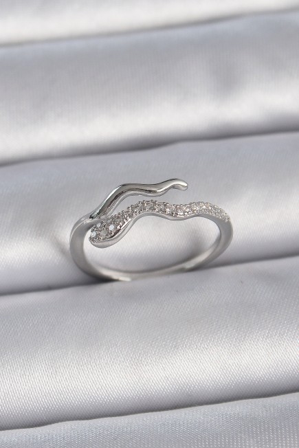 Pirinç Gümüş Renk Zirkon Taşlı Yılan Ayarlanabilir Model Kadın Yüzük - 258706