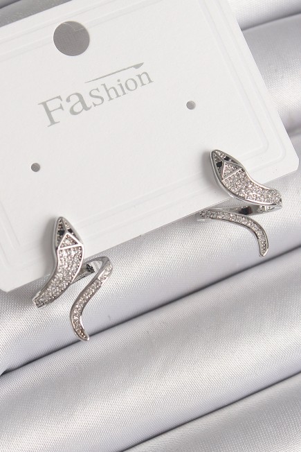 Pirinç Gümüş Renk Zirkon Taşlı Yılan Model Kadın Küpe - 259335