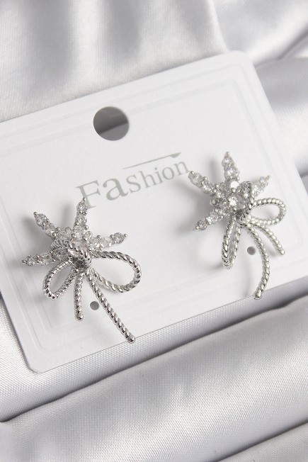 Pirinç Gümüş Renk Zirkon Taşlı Yıldız Düğüm Model Kadın Küpe - 259871